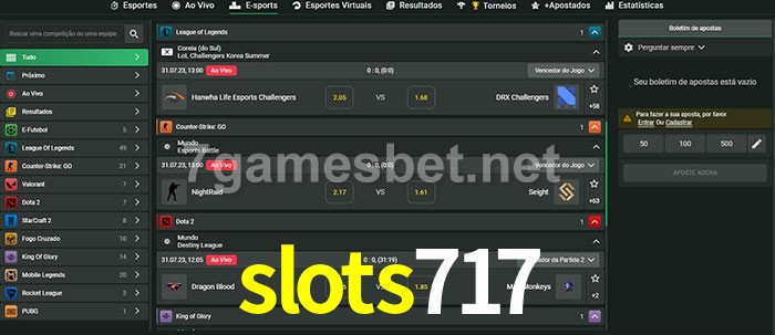 A aposta slots717 oferece aos jogadores a experiência mais conveniente de apostas em eSports!